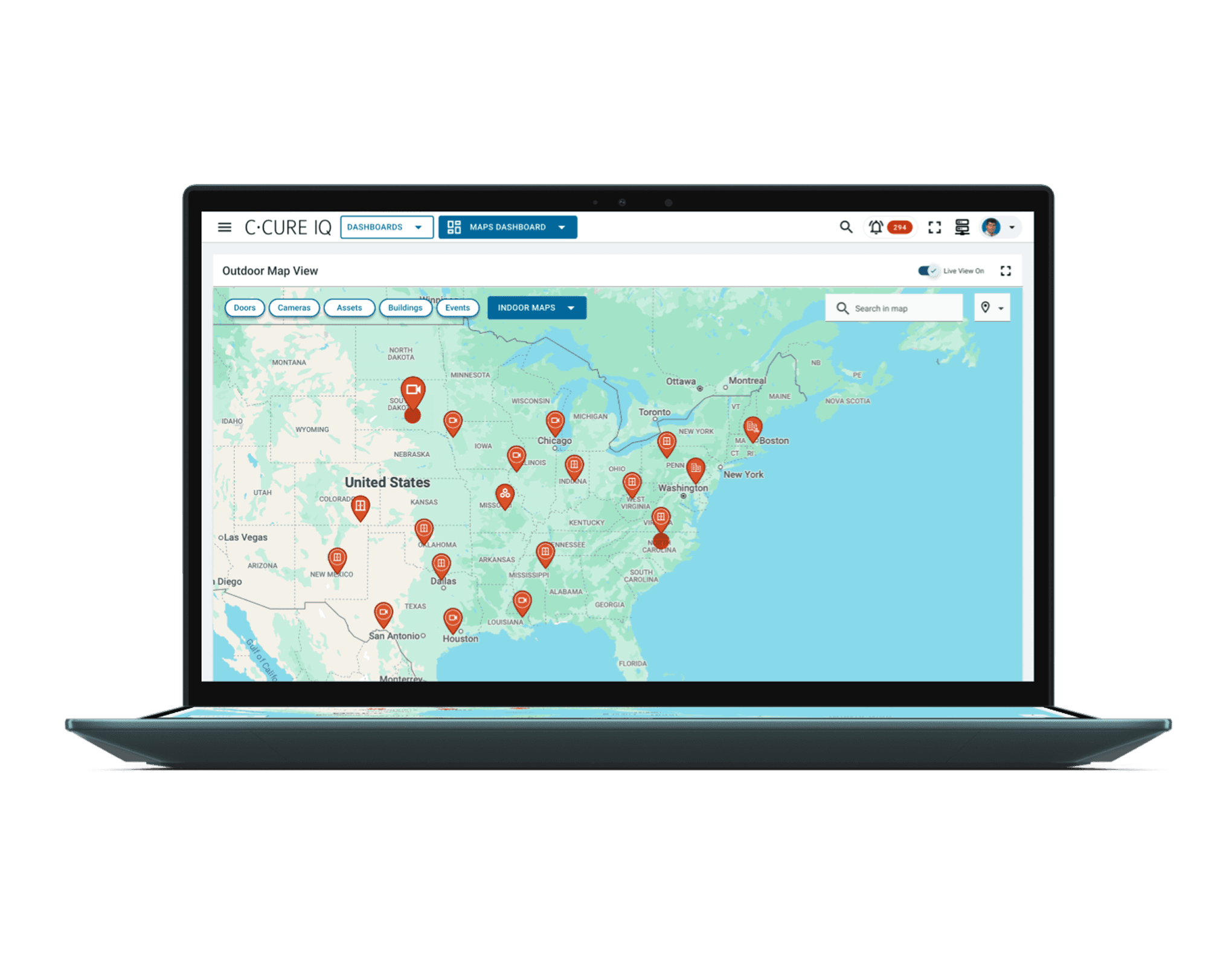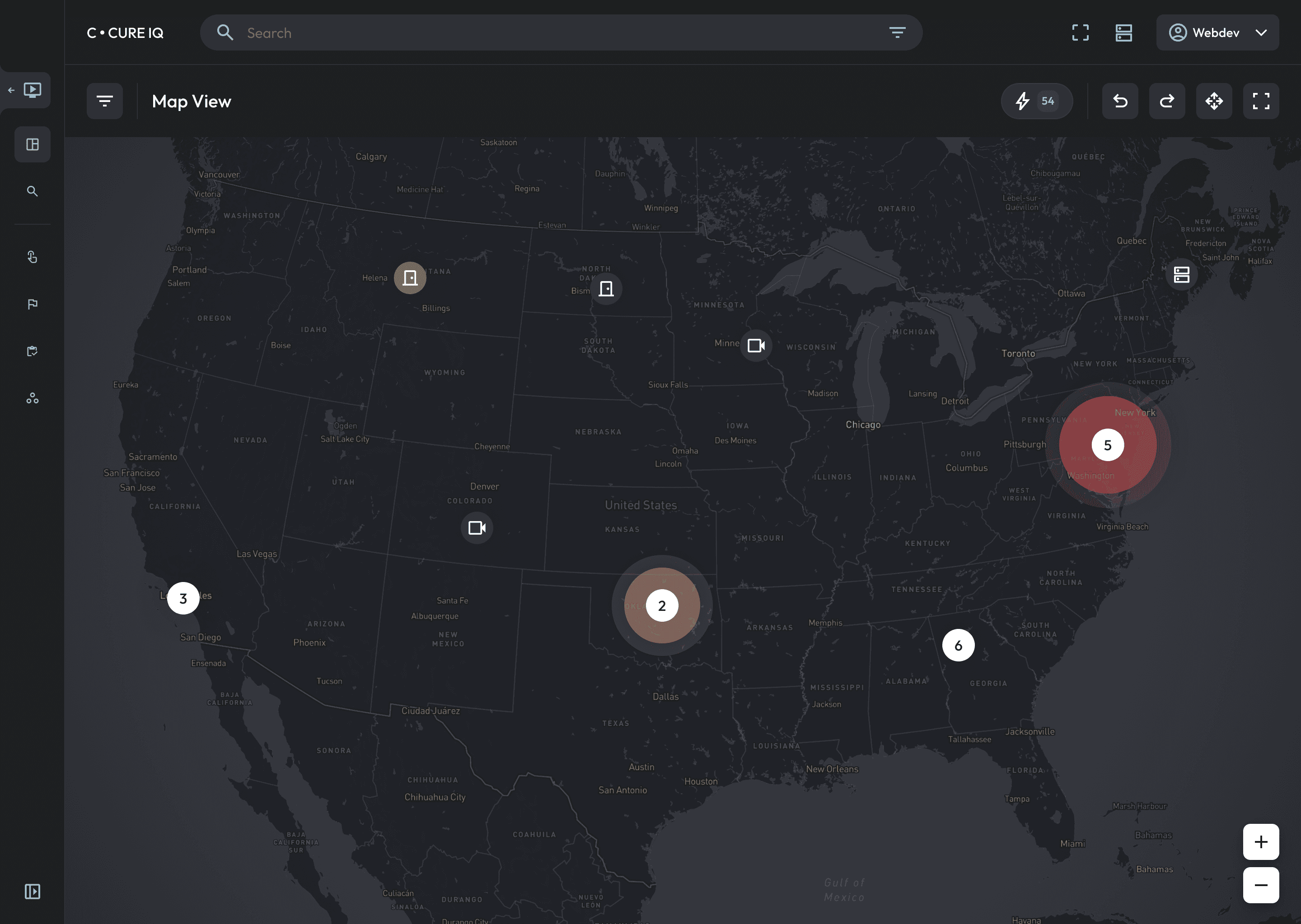 Devices and cameras exist as layered, interactive map elements